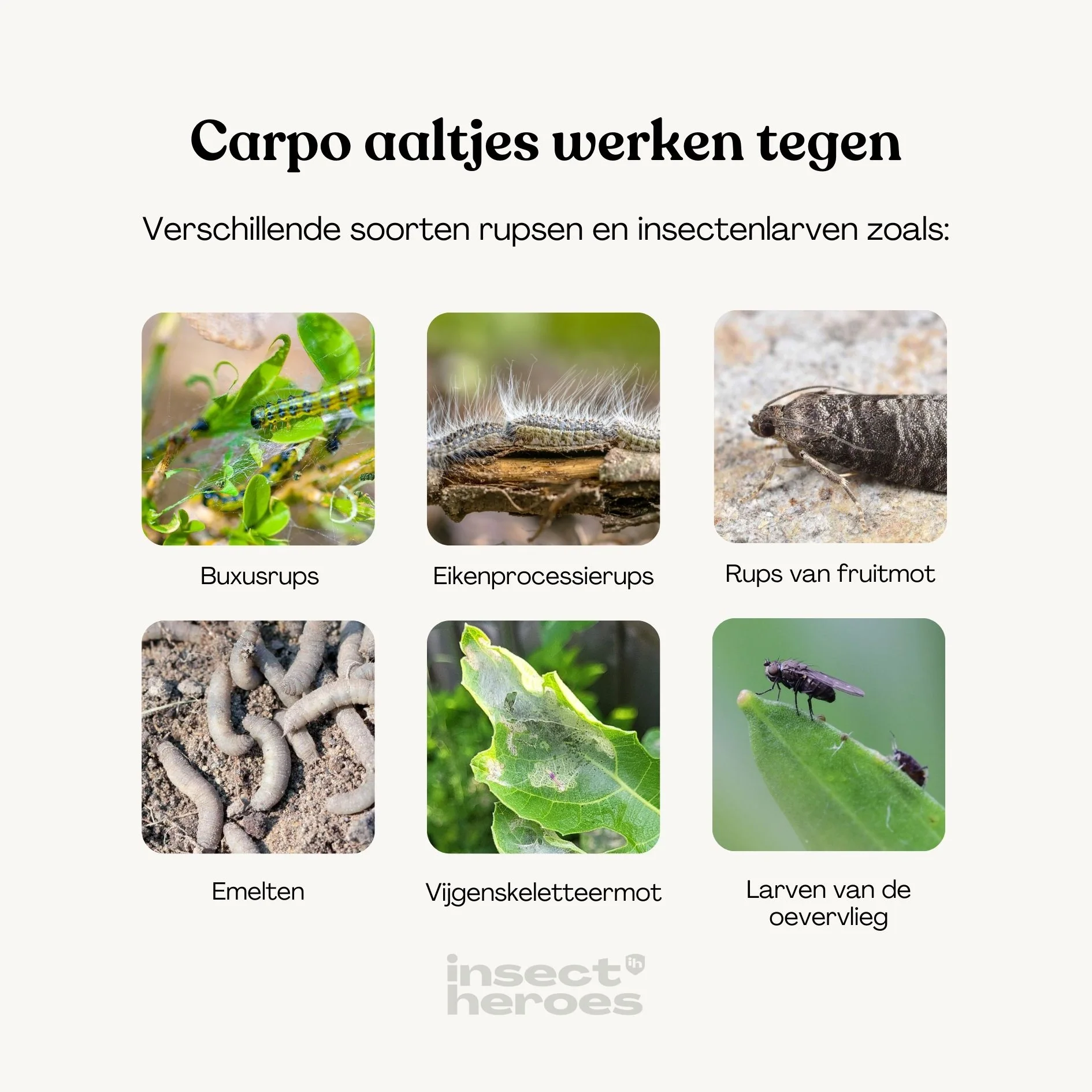 Carpo is de natuurlijke vijand van de emelt (larve van de langpootmug).