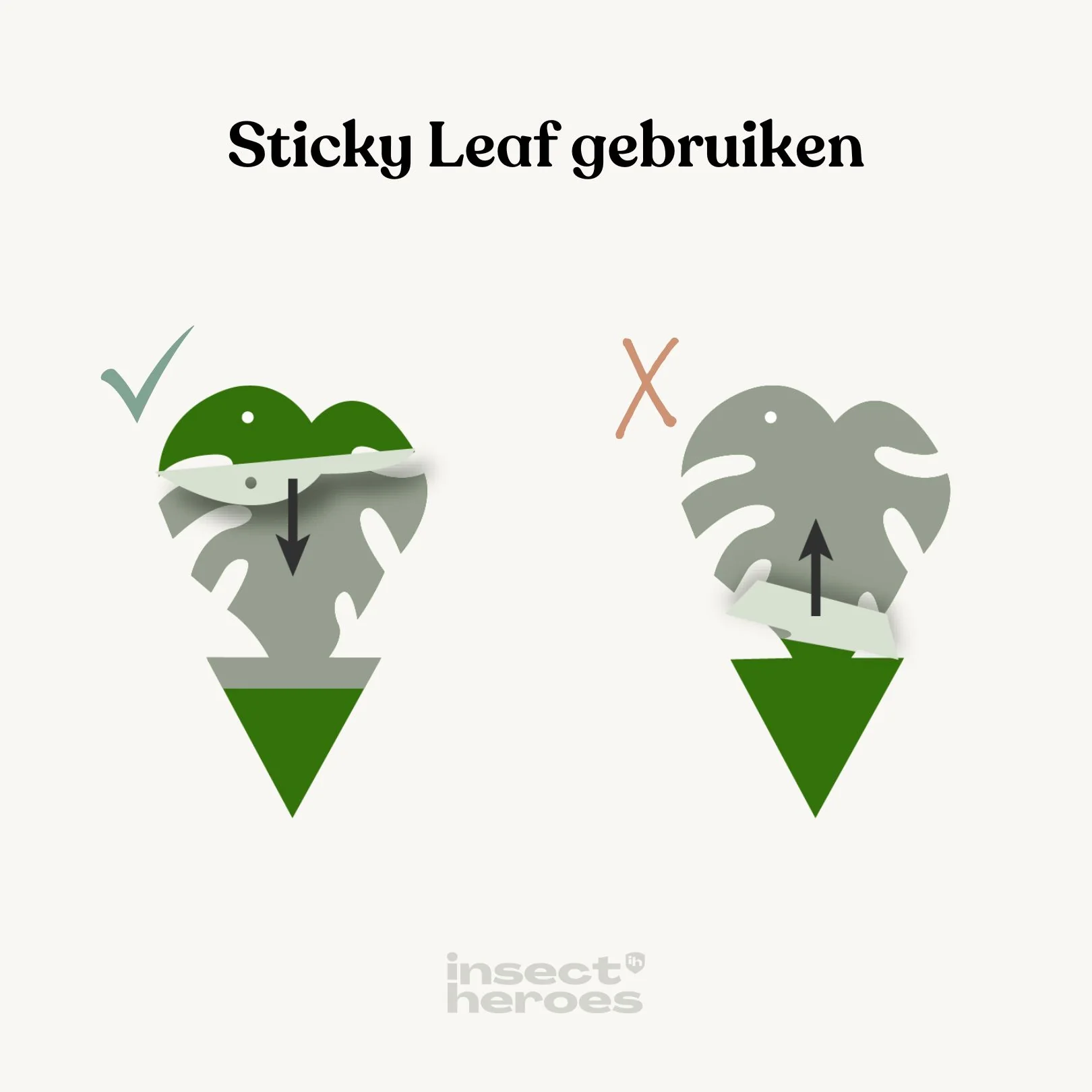 Sticky Leaf Groen Mini is de ideale gadget voor het vangen van kleine zwarte vliegjes bij je kamerplanten. Het vangkaartje, volledig van papier, heeft een onweerstaanbare groene kleur die ronddwalende plaaginsecten aantrekt. Bij het landen blijven ze vastzitten aan de krachtige lijm. Perfect voor een hevige plaag of voor het vroegtijdig monitoren van rouwvliegjes.